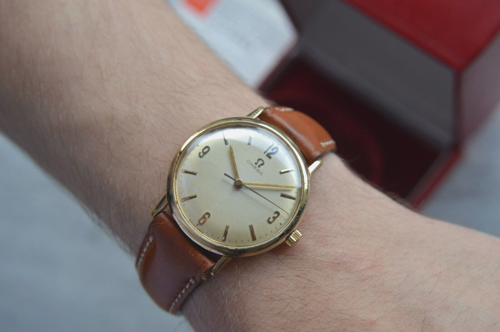 14/07/1964 Vintage Omega Fullset Gold Leather Men's Mechanical Dress Watch