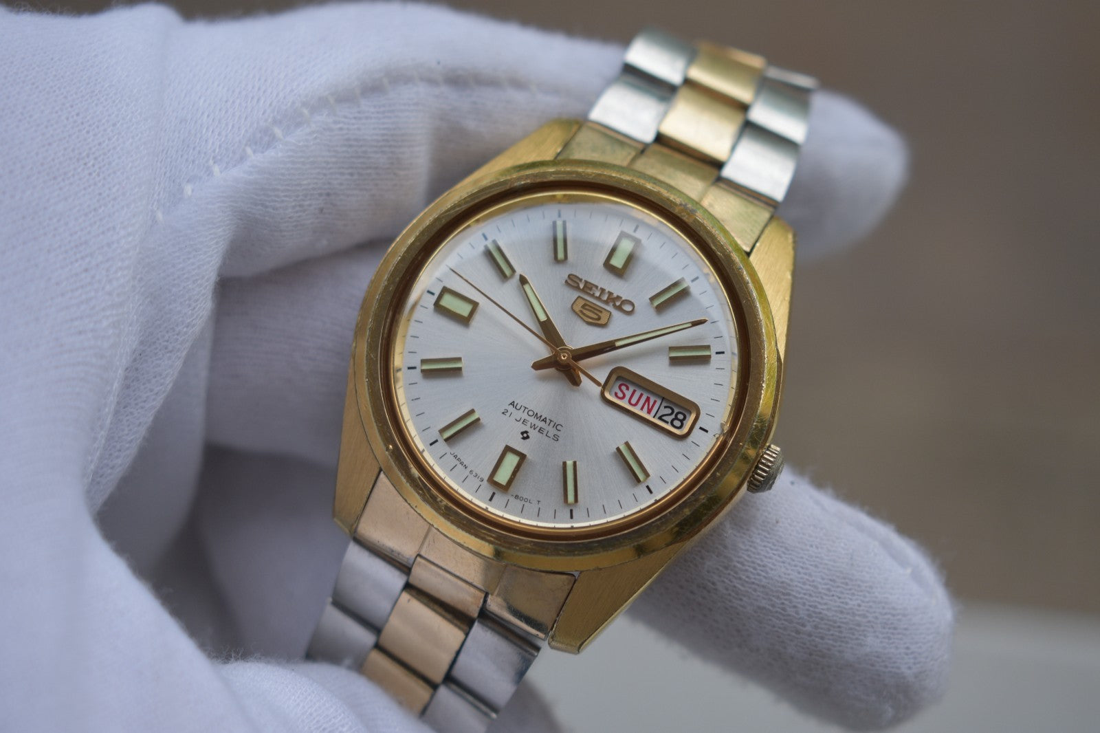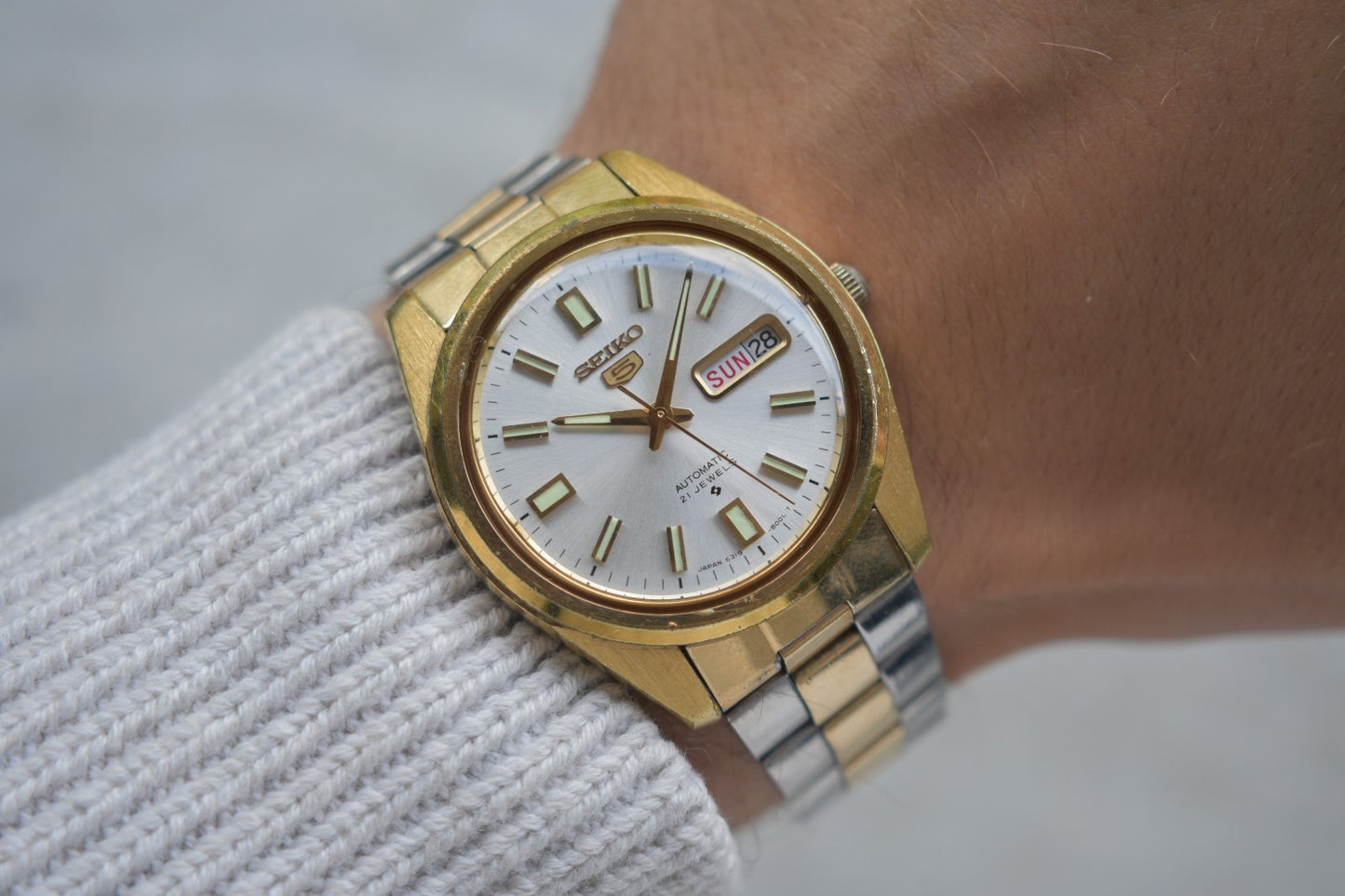 January 1977 Seiko Men's Watch Two Tone Automatic Day Date Bracelet Sunburst