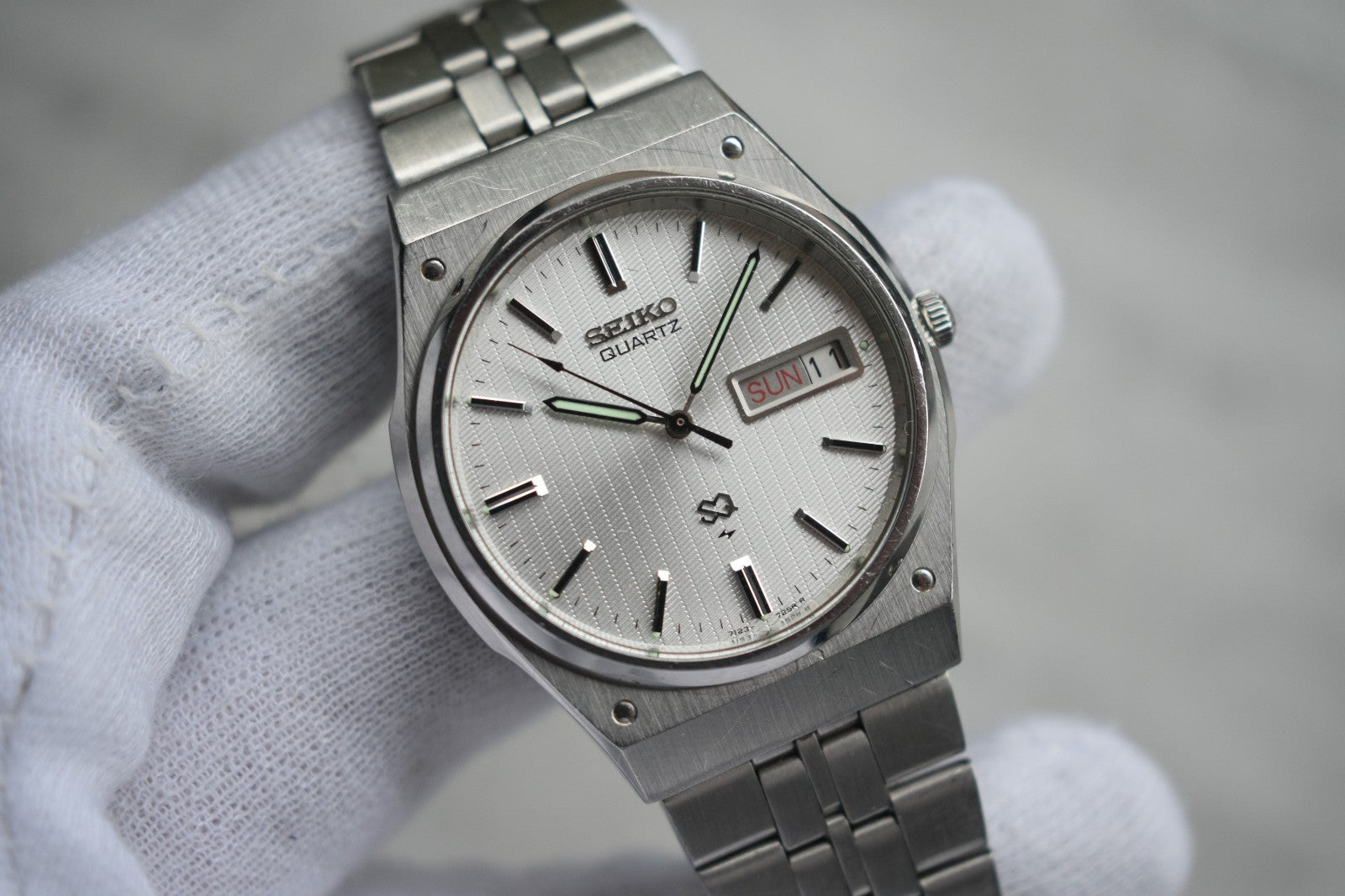 June 1982 Seiko Quartz Silver SQ Textured Dial Bracelet Men's Watch Day Date