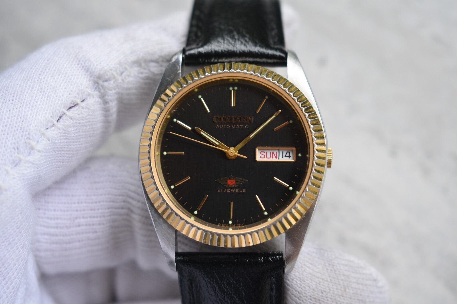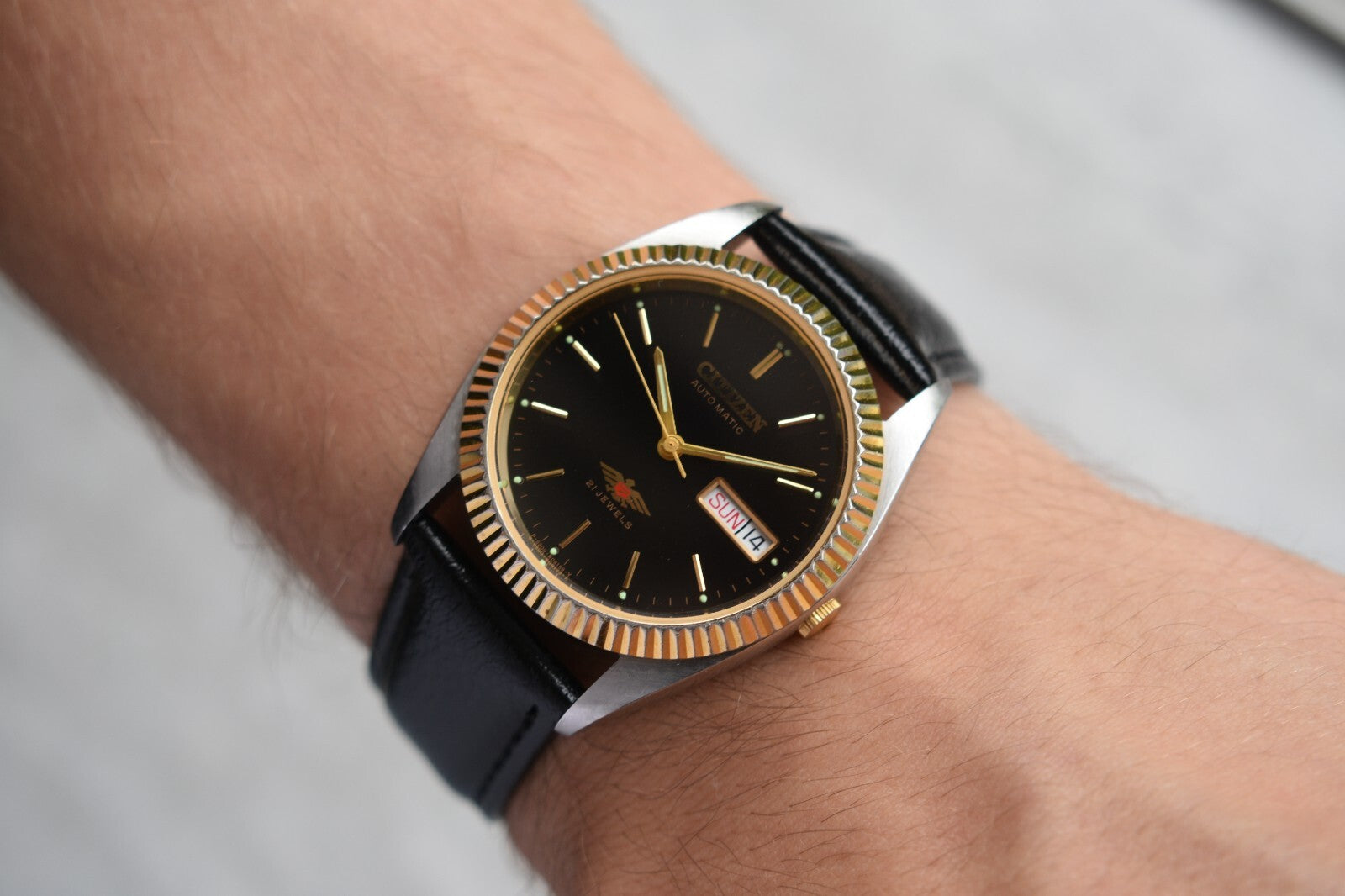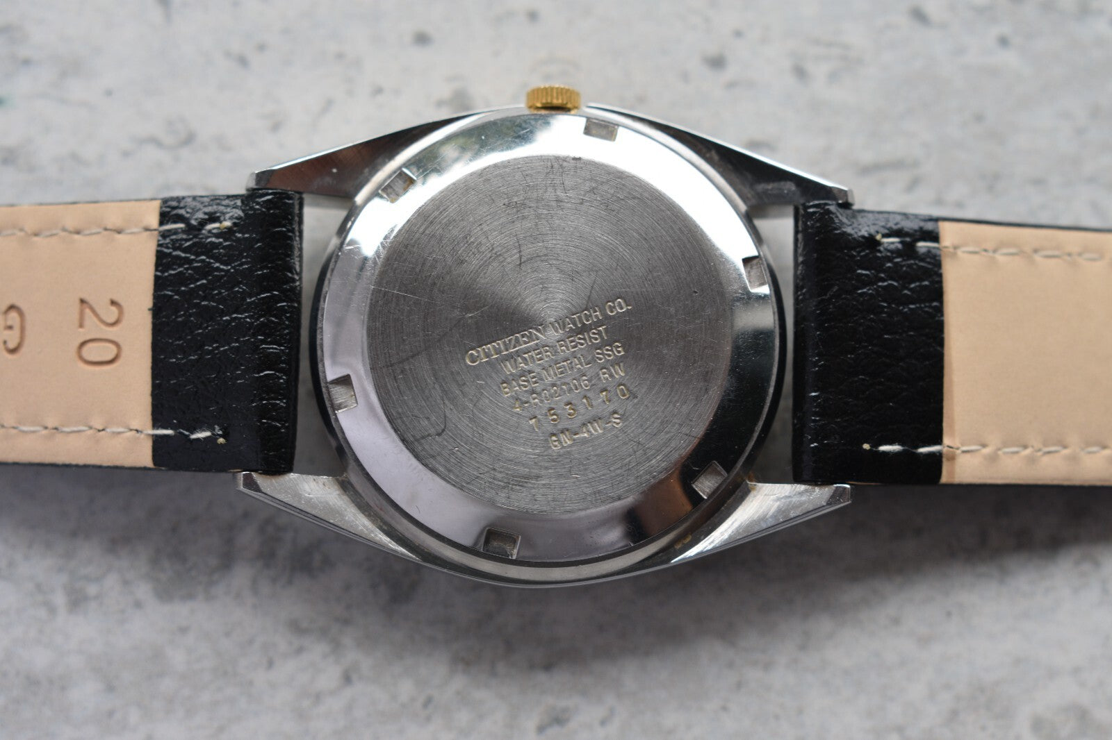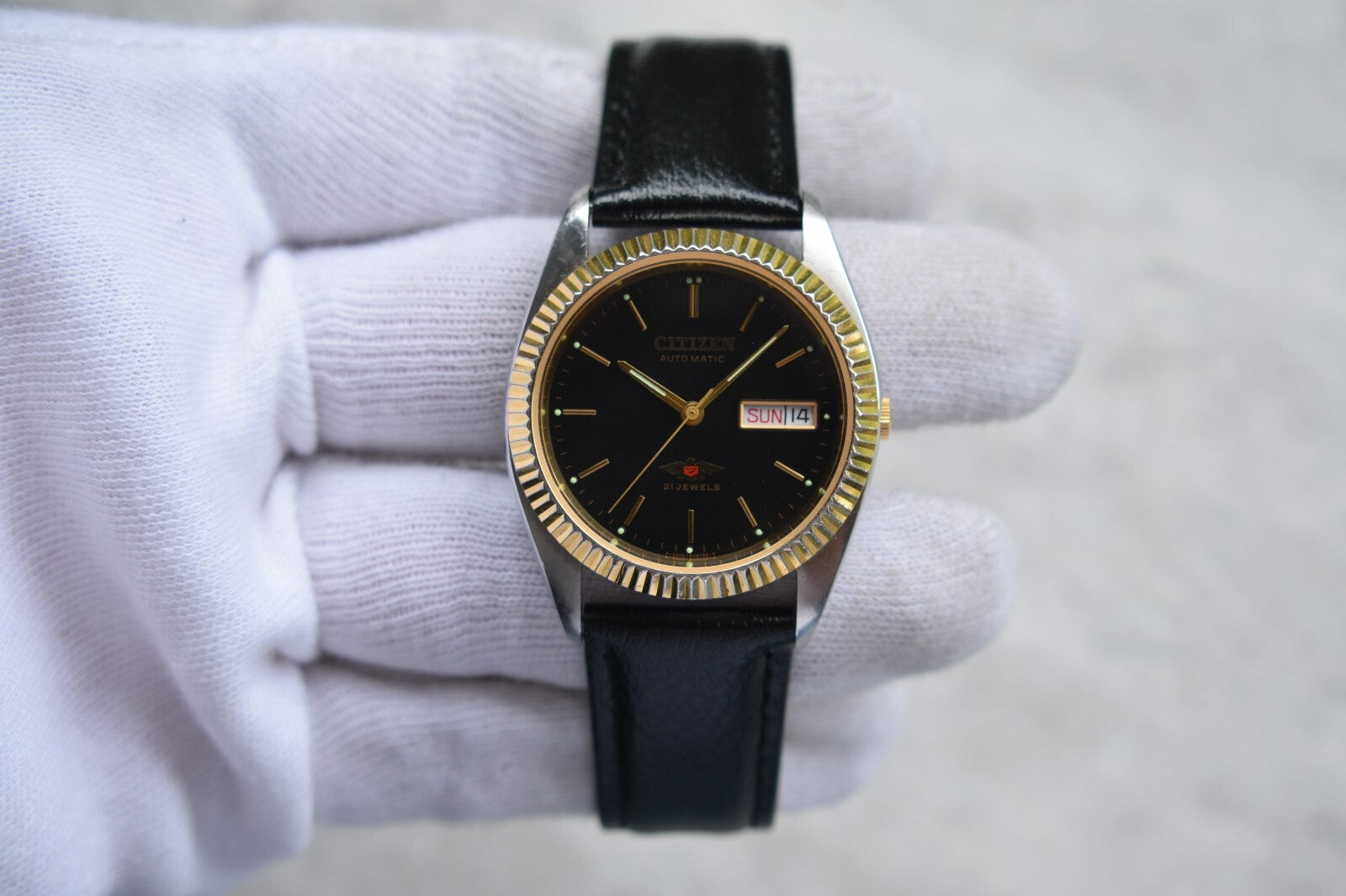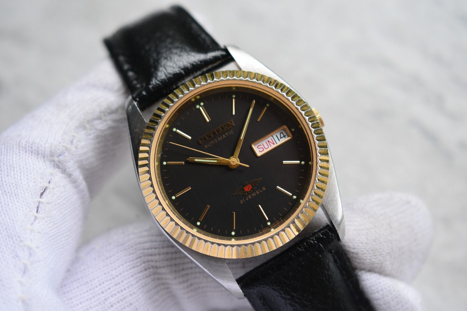 May 1997 Vintage Citizen Eagle 7 Automatic Men's Fluted Black Dial Leather Watch