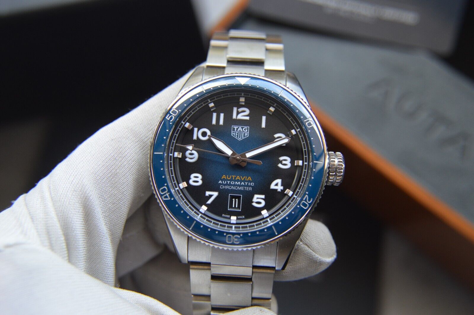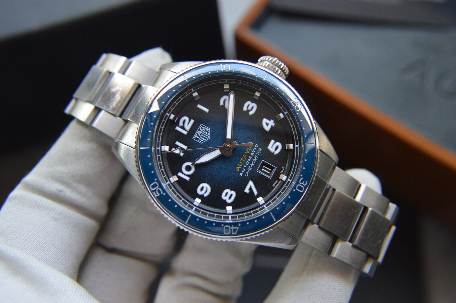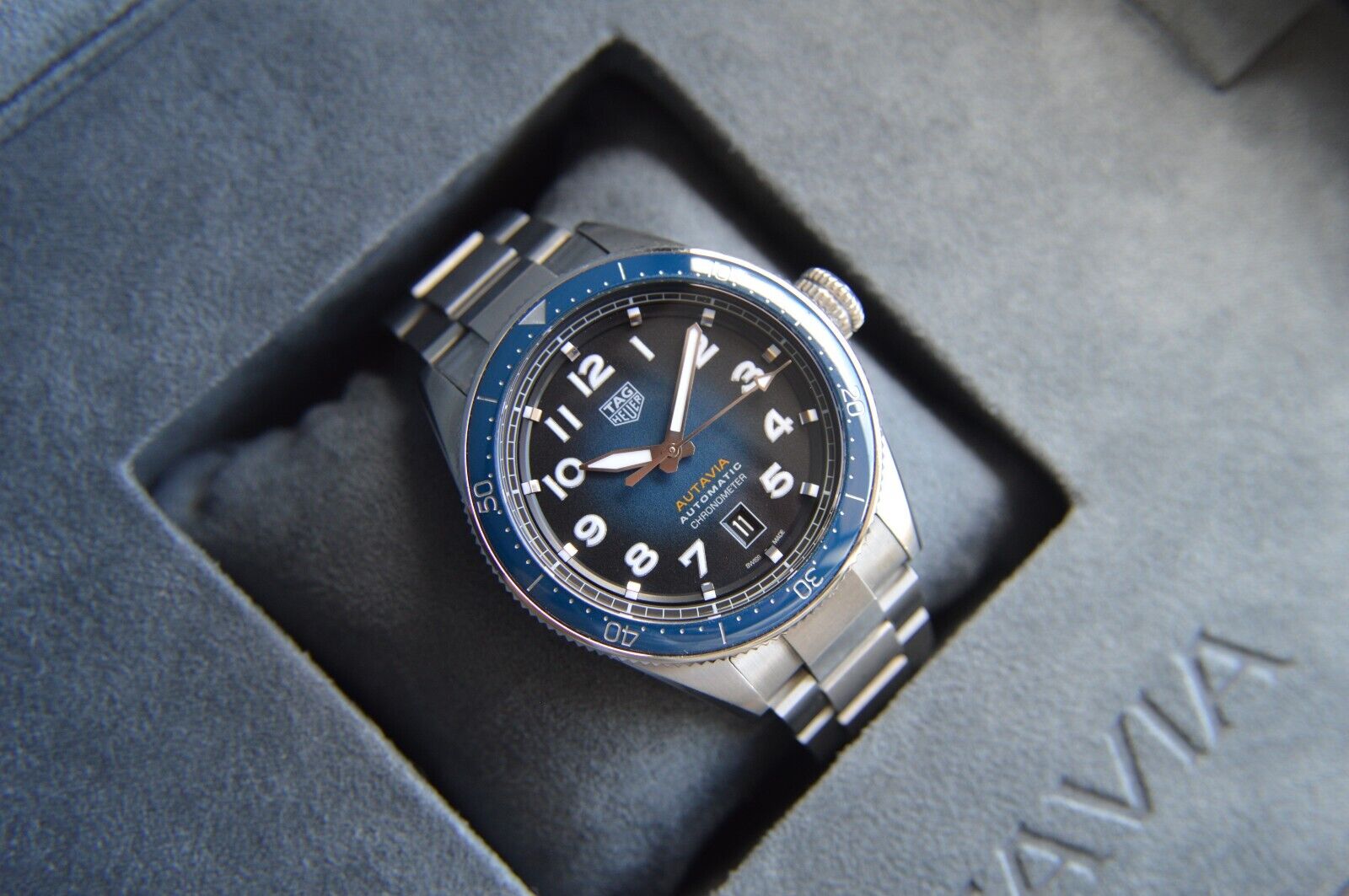Tag Heuer Autavia Automatic Fullset 42mm Steel Blue Men's Dive Watch WBE5116